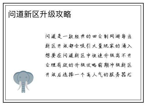 问道是一款经典的回合制网游,每当新区开放,都会吸引大量玩家的涌入。想要在问道新区中快速升级,离不开合理有效的升级攻略。